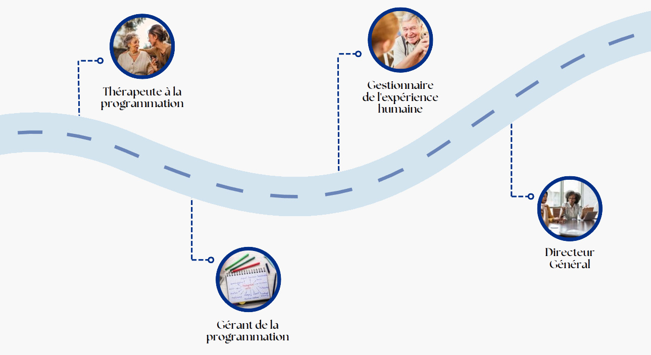 Votre parcours commence ici. De PSSP à un poste de gestion comme Directeur/trice des soins et Directeur/trice Général(e), venez découvrir comment vous pouvez vous épanouir tout au long de votre parcours.